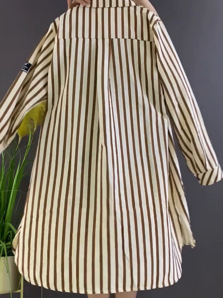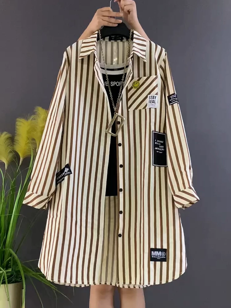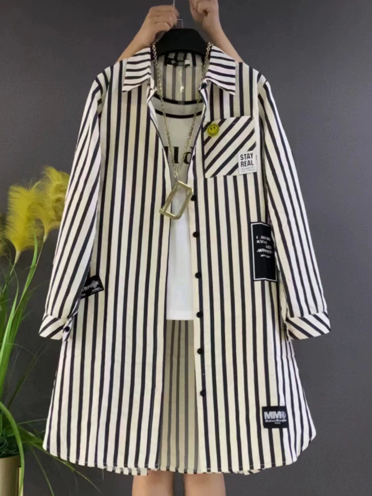 Fashionable early spring 2026 Korean version with fattening and enlarging to cover the flesh and make the body look slimmer, medium-length shirt, versatile long-sleeved top, fashionable