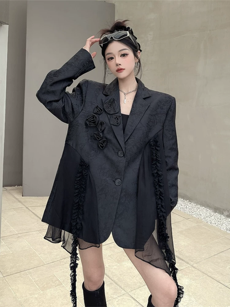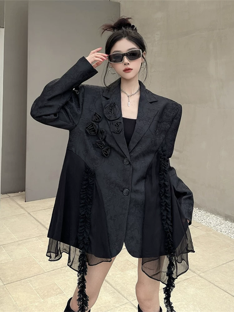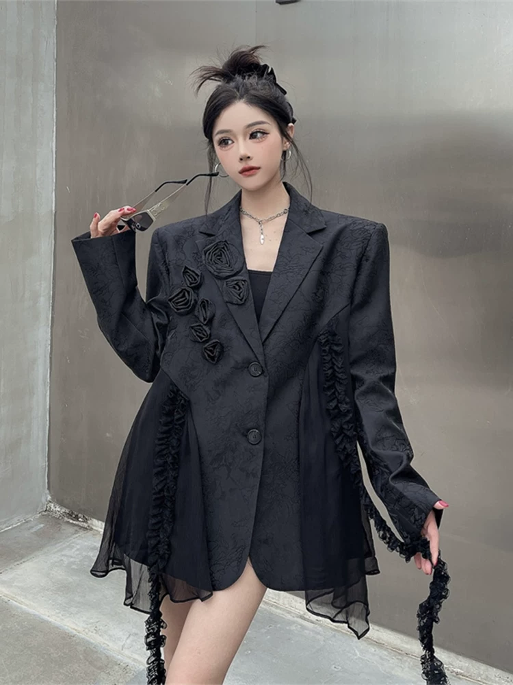 Heavy industry three-dimensional rose jacquard stitching black suit jacket women’s spring unique street bf shoulder pad suit trend