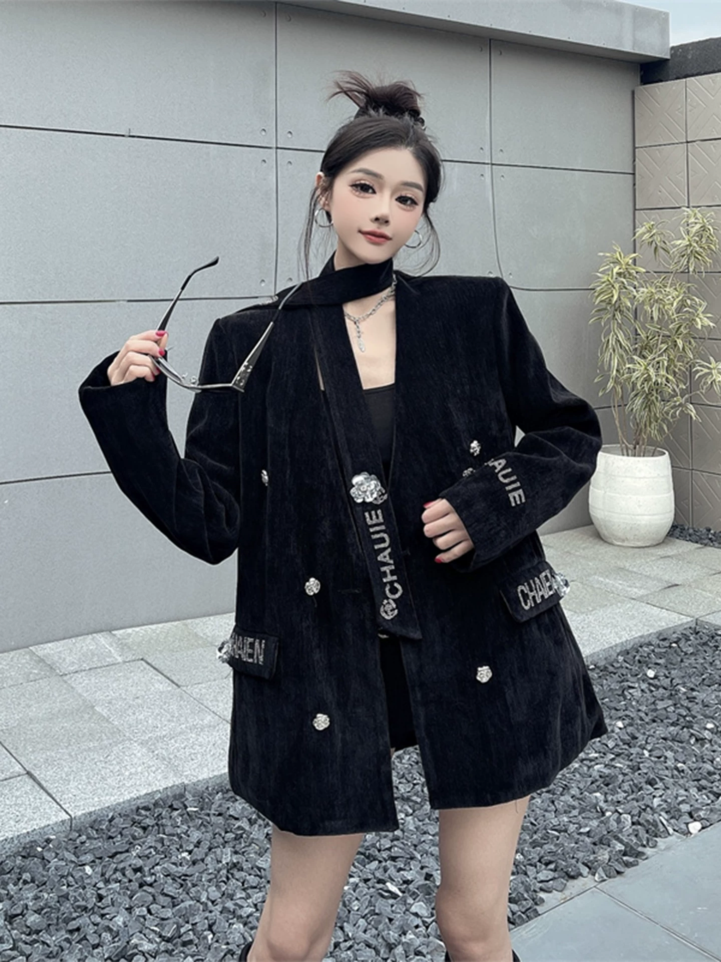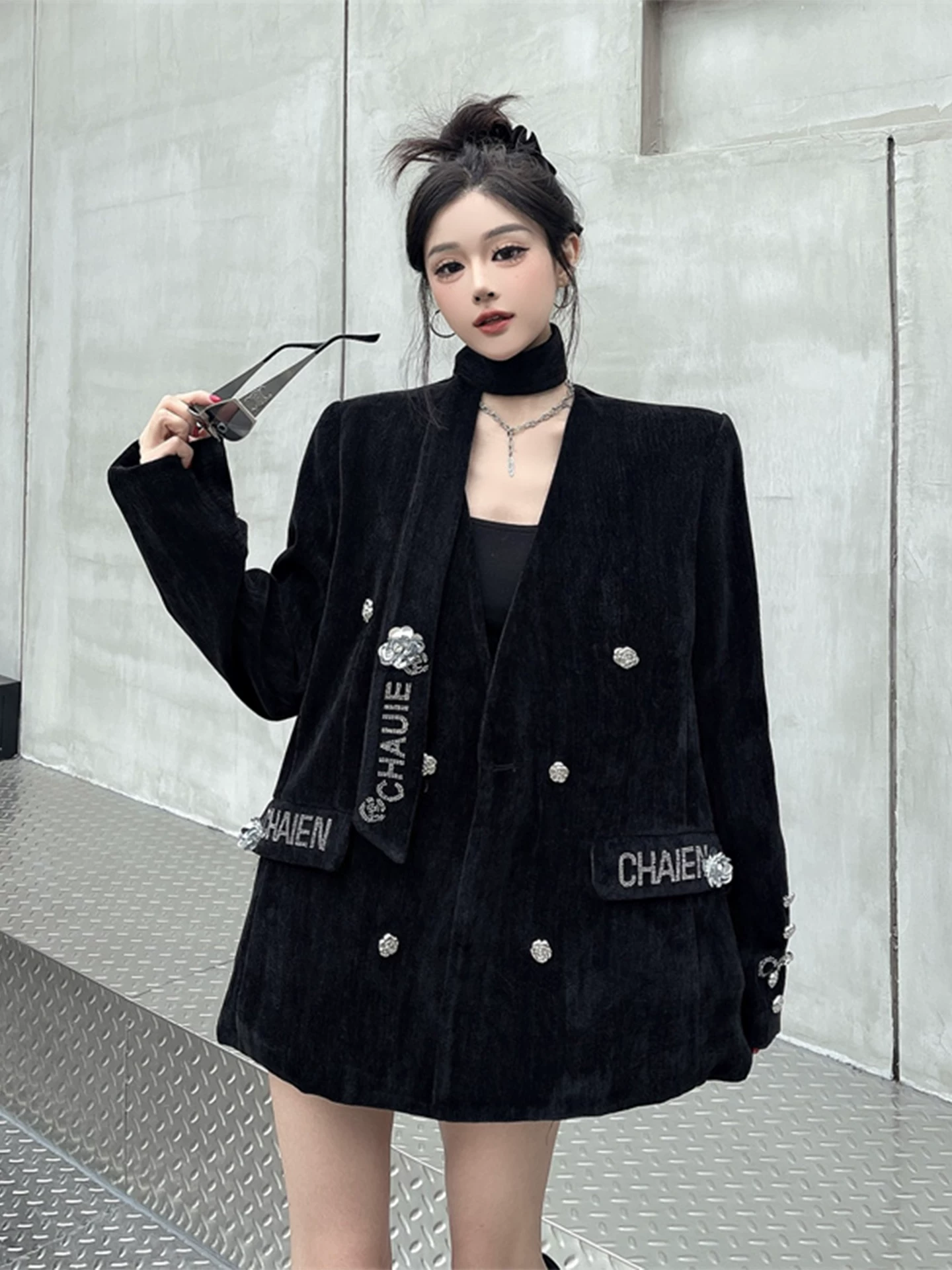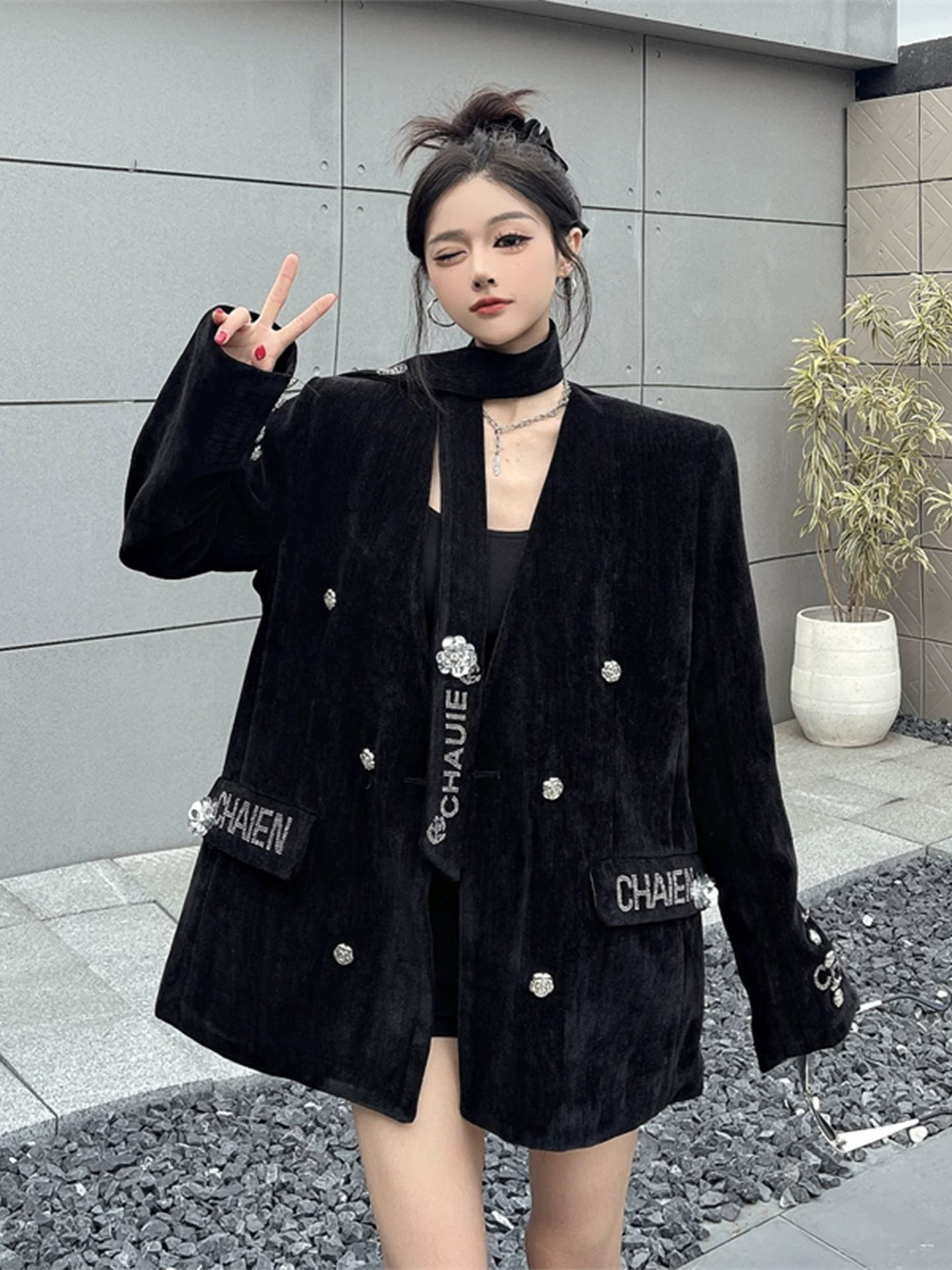 Light luxury hot diamond shiny chenille suit jacket for women autumn and winter design, loose and cotton casual suit trend